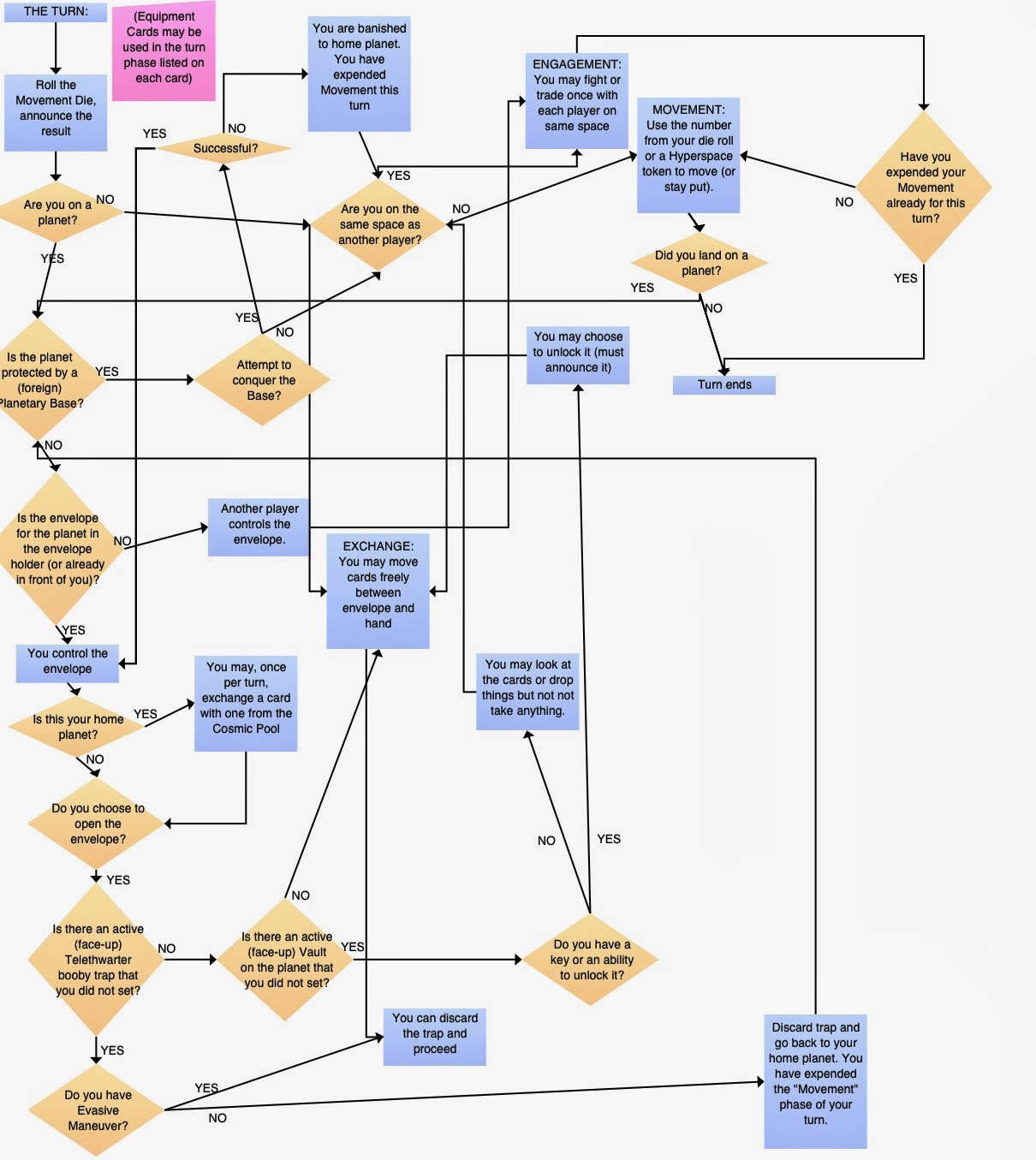 Playtesters will be very supportive and offer all kinds of helpful suggestions. Write it all down and look over the notes from time to time. But don’t listen to most of it. First time playtesters don’t necessarily know what type of experience your game strives to convey, so they will automatically equate the experience of playing it with other games they have played. This is why my game Chaosmos gets compared to Clue and and Capture the Flag and Battlestar Galactica. Yes, those are VERY different games. No one really knows what Chaosmos is like because it’s something new. What you should do is pay attention to what the playtesters enjoy about the game and how they subconsciously try to make it more fun. If they play a rule wrong and have more fun than a different playtest group, figure out WHY it was more fun to play it wrong. Interpret what they are saying in the context of their misunderstanding of the game.